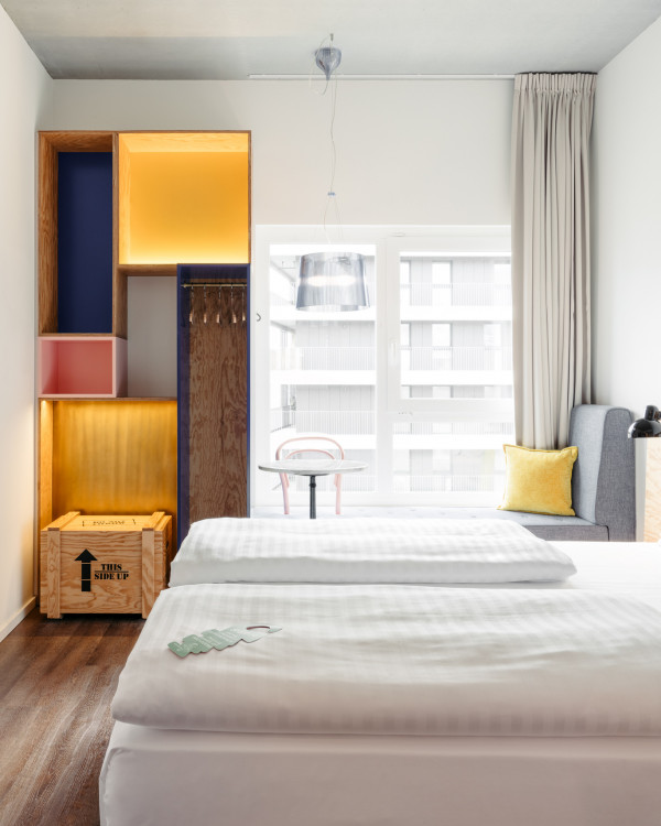 Das großzügige Maisonette Hotelzimmer für bis zu 3 Personen ist geprägt von hohen Decken. Ruh dich auf der gemütlichen Couch aus oder fühl dich im Doppelbett auf der erhöhten Galerie wie im 7. Himmel. Du möchtest deinen Hund mitbringen? Kein Problem – für 19 Euro Aufpreis pro Nacht ist dein Vierbeiner im Hotelzimmer, an der Bar und im Coworking-Space gerne gesehen.